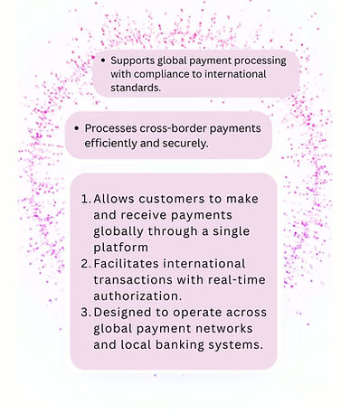 Provides reliable access to payment processing in supported regions worldwide. Seamless and secure payment processing across supported global markets. Built for reliability, ensuring smooth transactions wherever you do business. Fast, compliant, and dependable access to payment infrastructure. Designed to support businesses operating across multiple regions. Enterprise-grade security with consistent performance you can trust. Powering cross-border growth with stable and scalable payment solutions. Minimized downtime, maximized transaction success rates. Enabling global commerce with localized compliance and support.